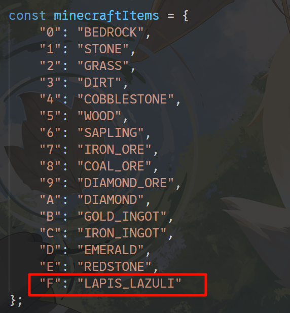 结合题目描述提示,答案应该是青金石在 Minecraft 中的 ID 的偏移,偏移值是固定的 -15。