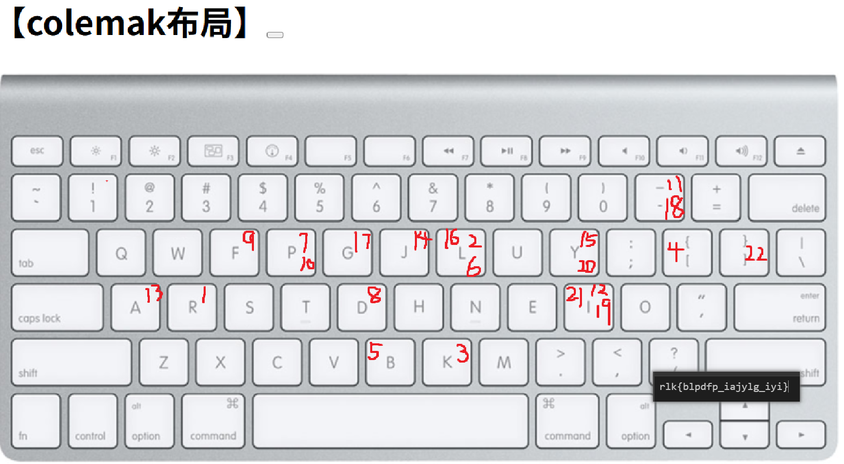 输入的时候误以为是 QWERTY 布局,其实是 Colemak 布局,对照敲一遍即可。