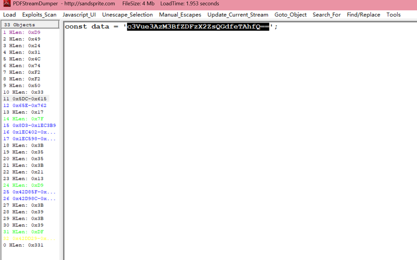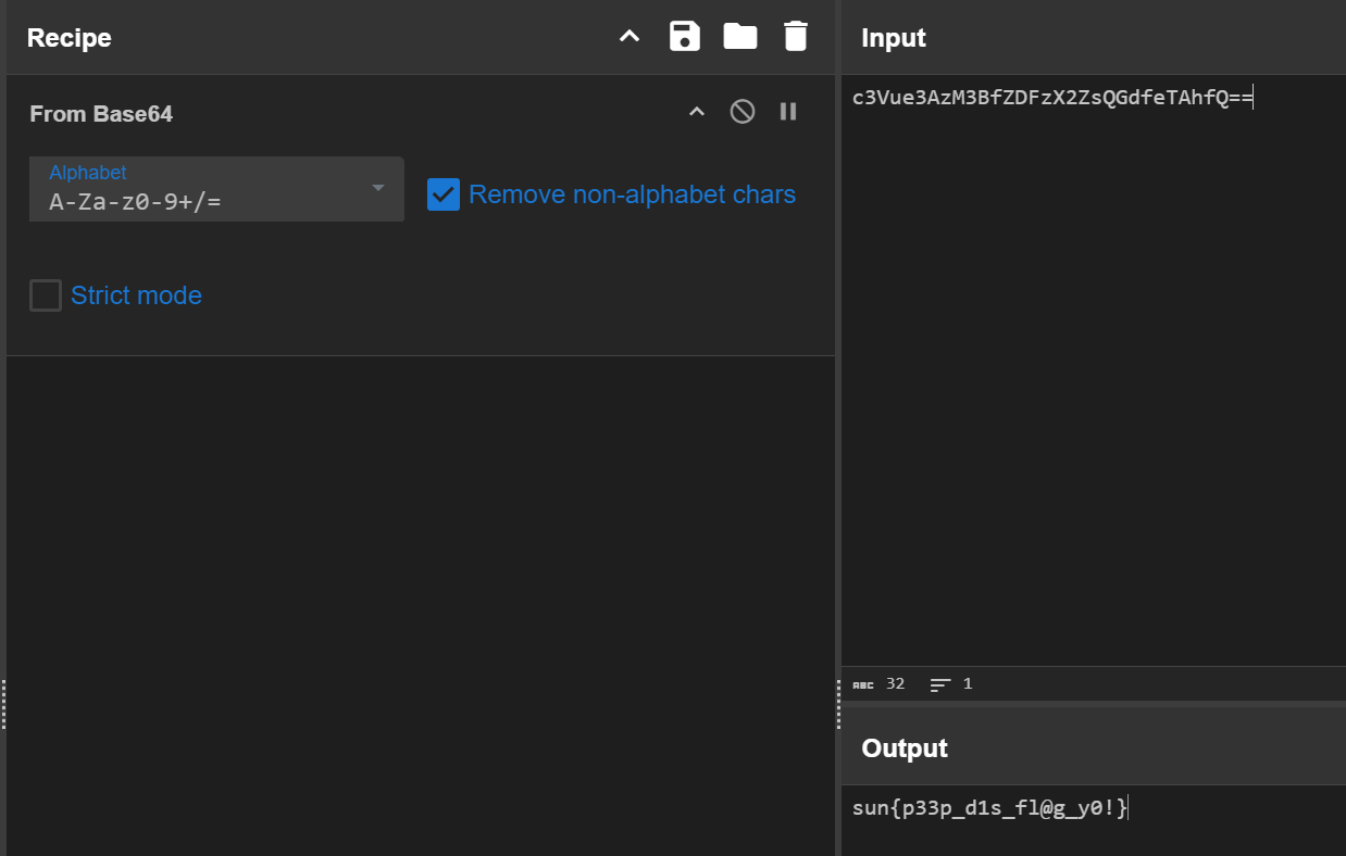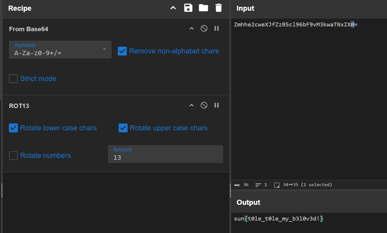 里面找到 base64 编码的 flag,解出来还需要 ROT13 一下。
