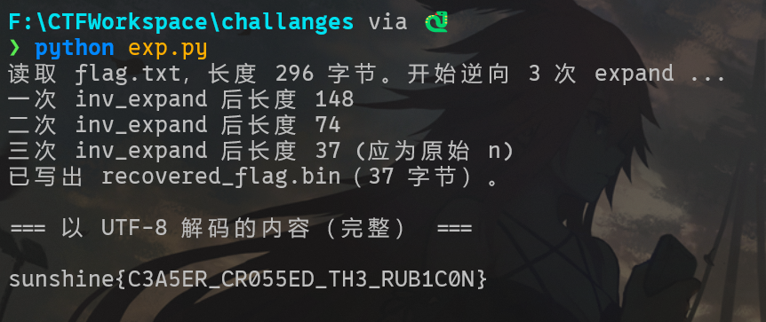 print(f"读取 flag.txt,长度 {L} 字节。开始逆向 3 次 expand ...")