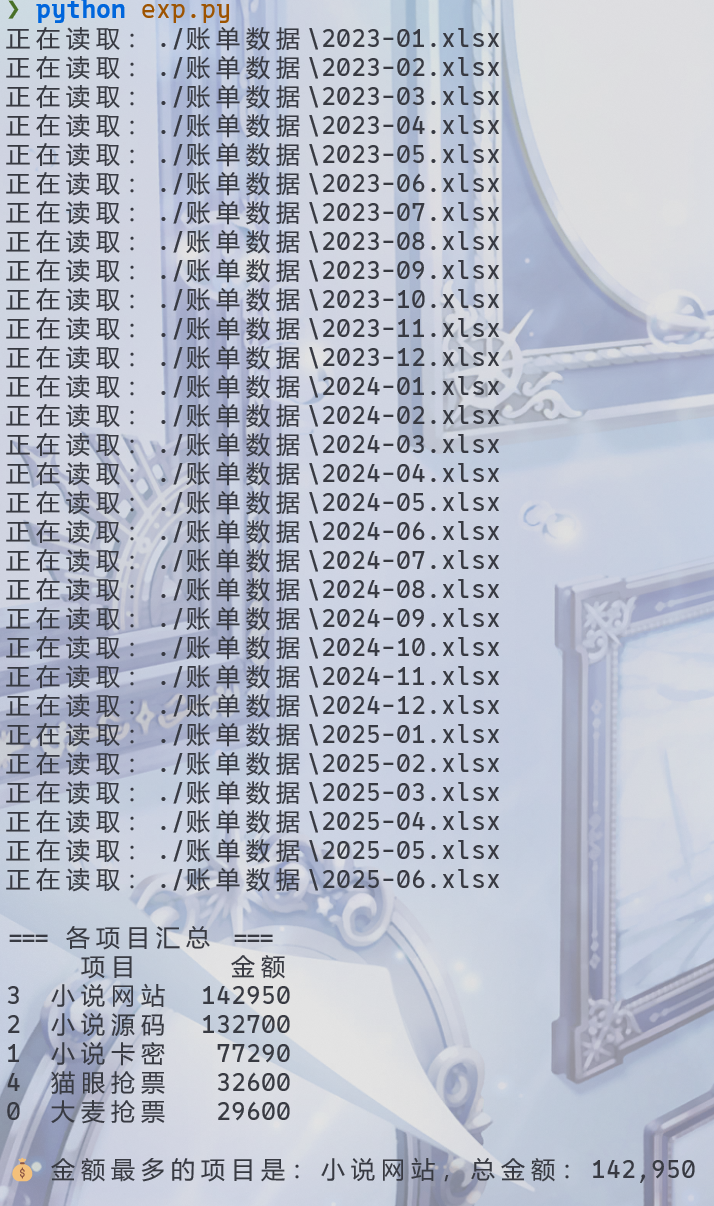 summary = all_data.groupby("项目", as_index=False)["金额"].sum()