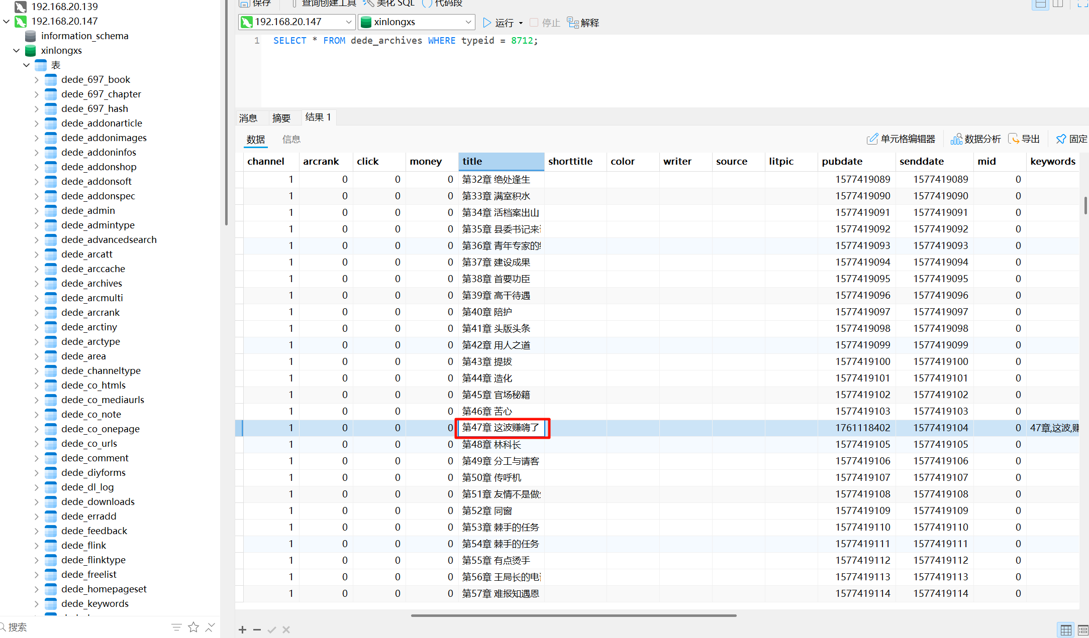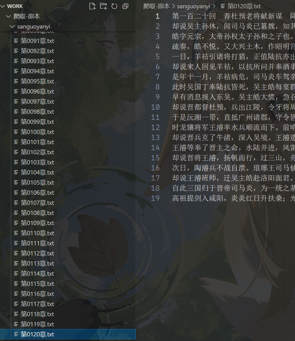 三国演义爬下来一共 120 章,但是数据库里面只有 117 章,所以缺了 3 章。