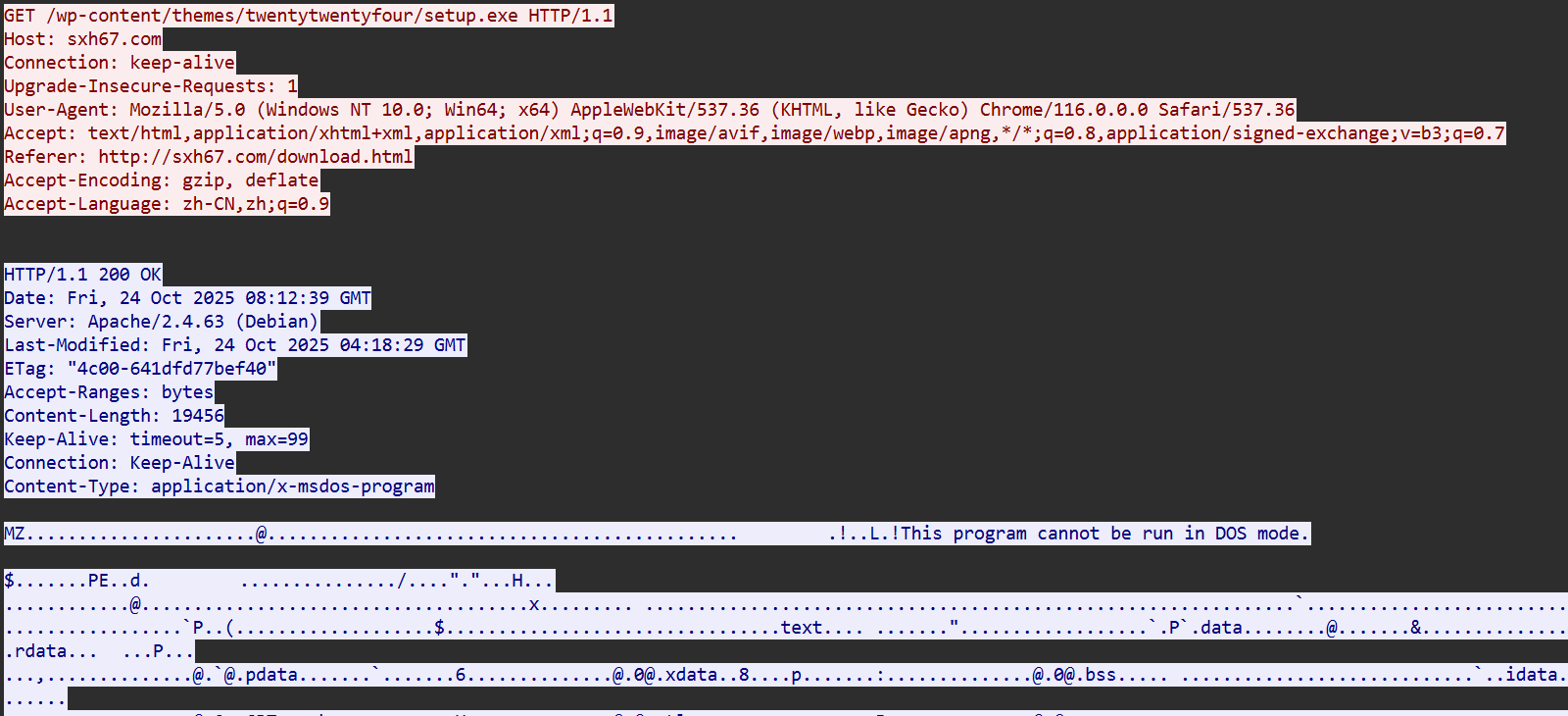 http.request.uri matches "/....$" 去筛选一下上线时发送的 stage 文件,然后用 1768.py 解密该文件。