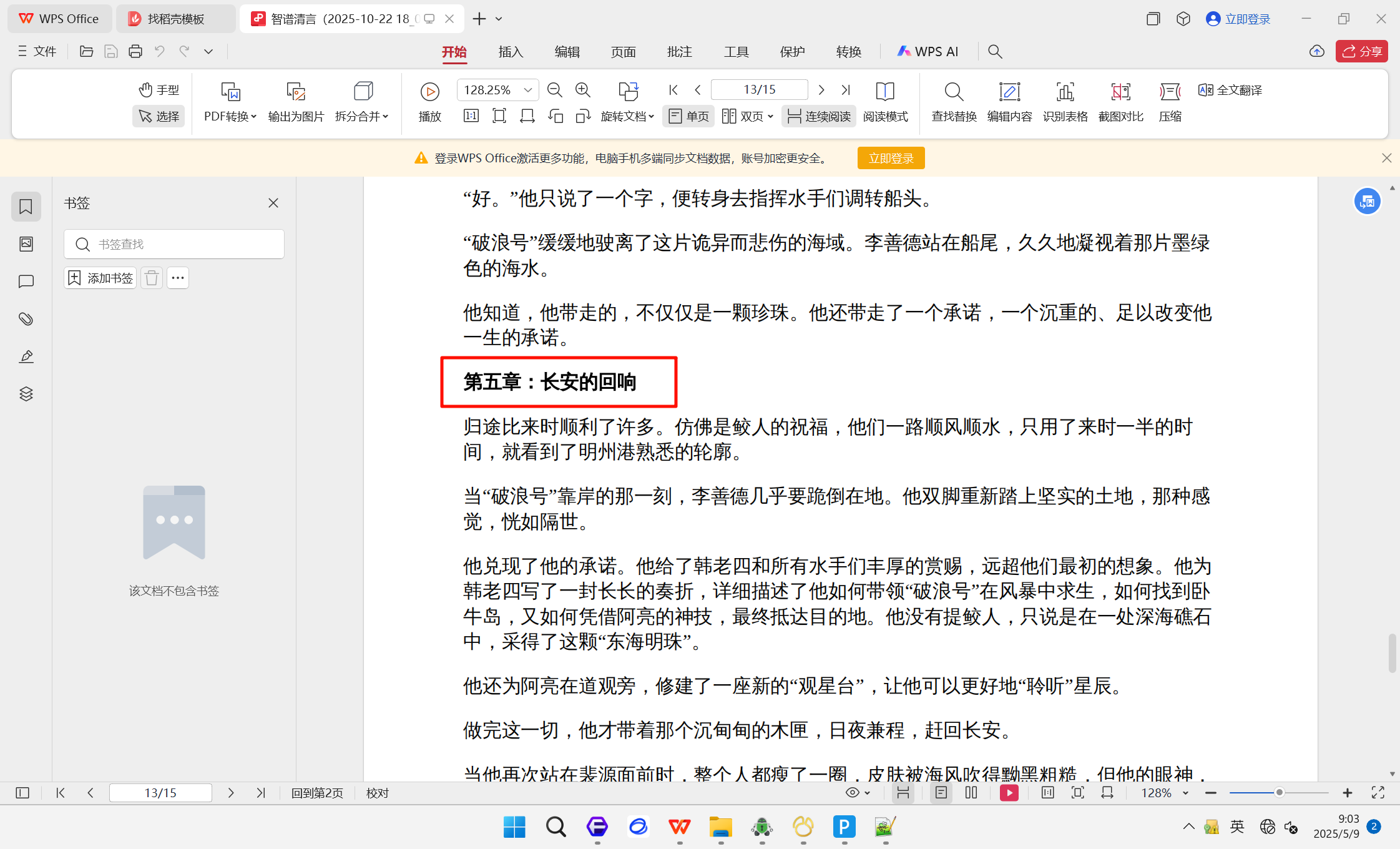 这题问错了,应该是有一个小说缺了几章,问一共缺了多少章。