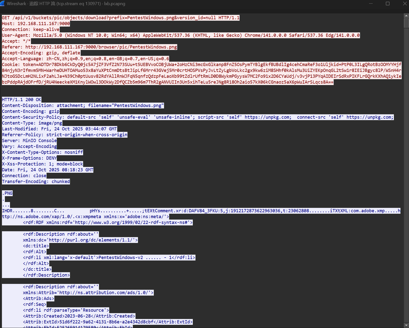 解密所有的传输数据,有一条命令查看了进程,发现有一个 minio.exe,这是一个对象存储系统。