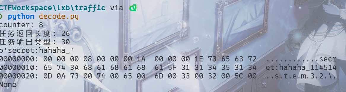 需要把传输的 raw data 转成 base64,然后用下面的脚本解密,记得把 AES Key 和 HMAC Key 丢进来。