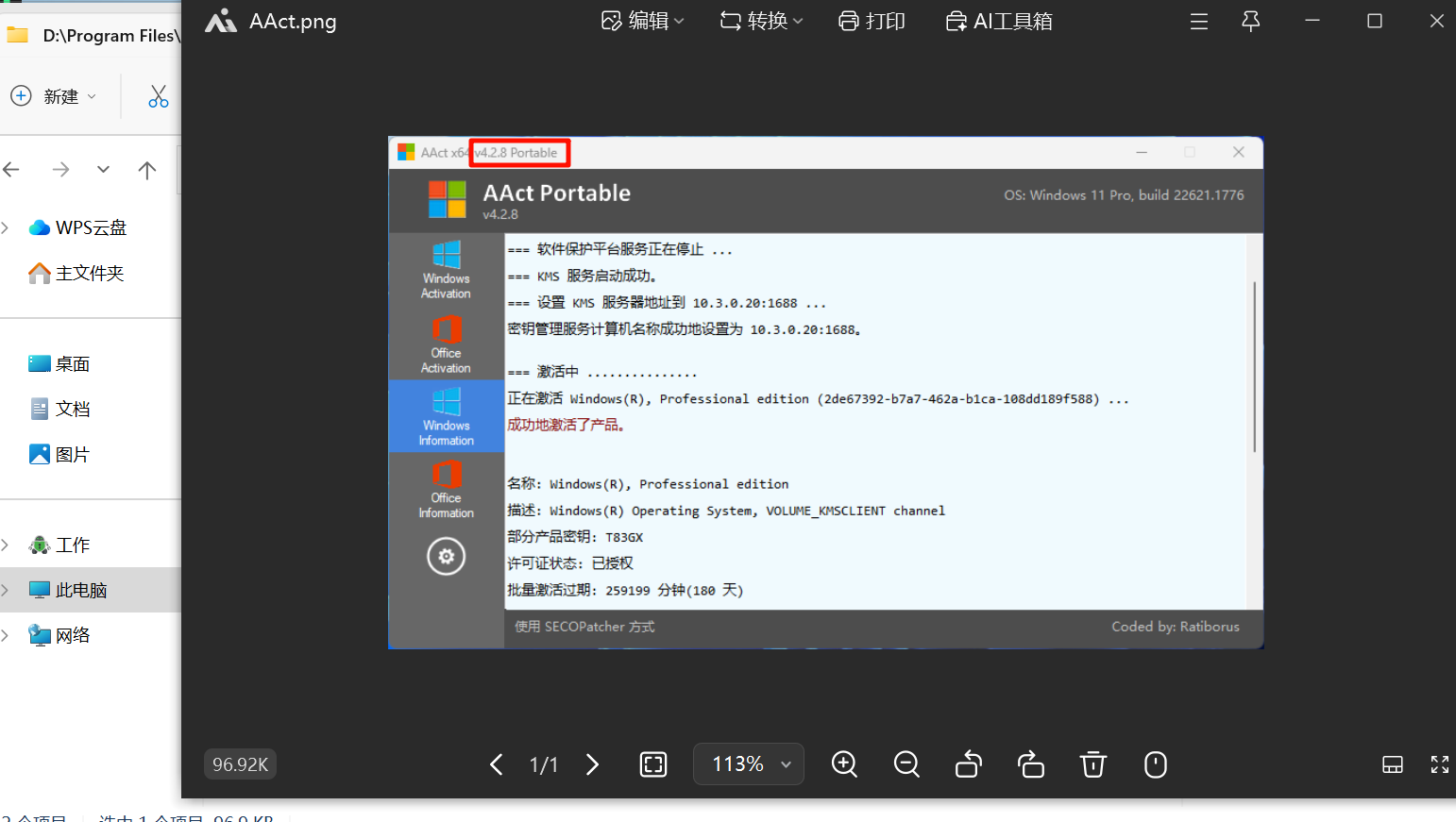 用 BitLocker 密钥解开加密磁盘,里面可以找到一张使用激活工具的截图,可以直接看到版本信息。